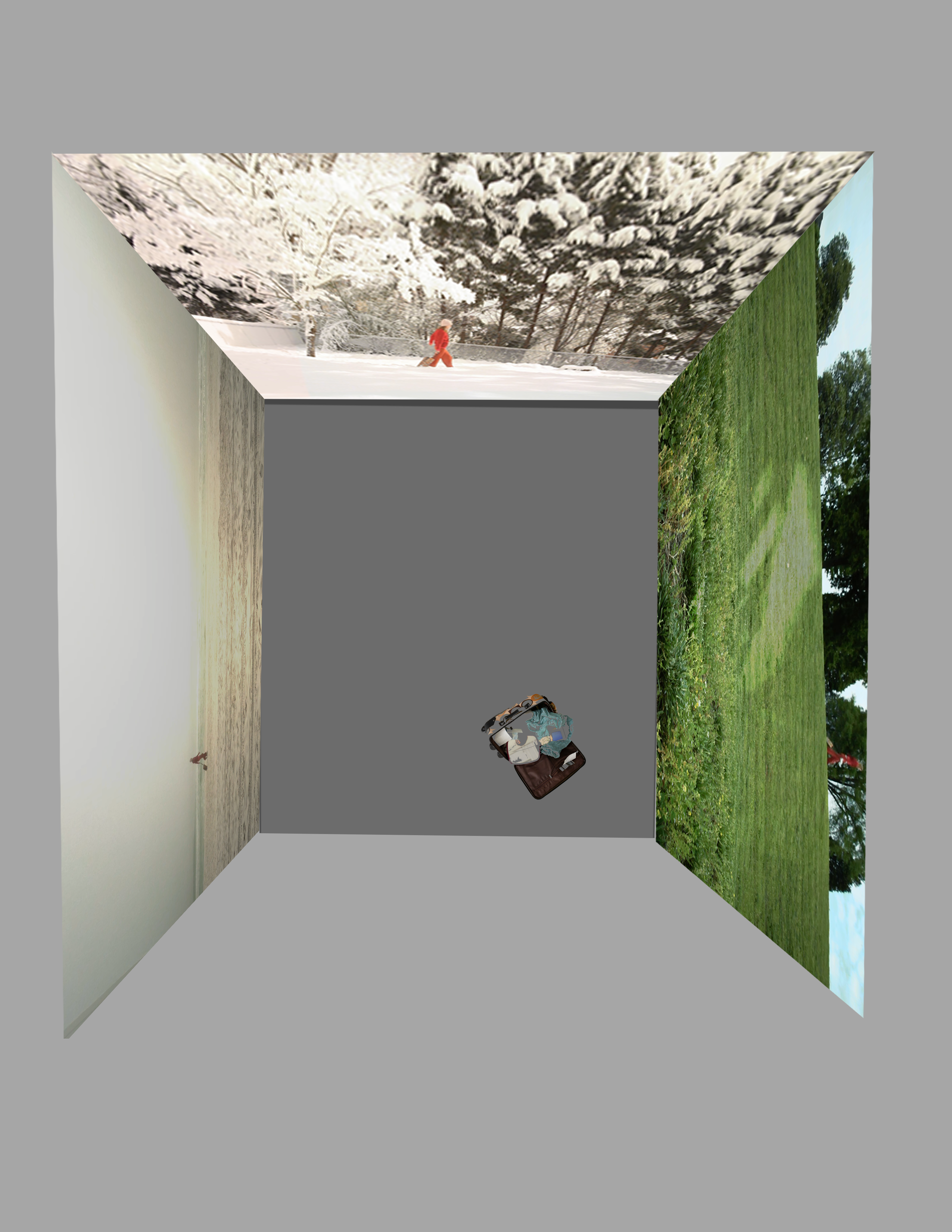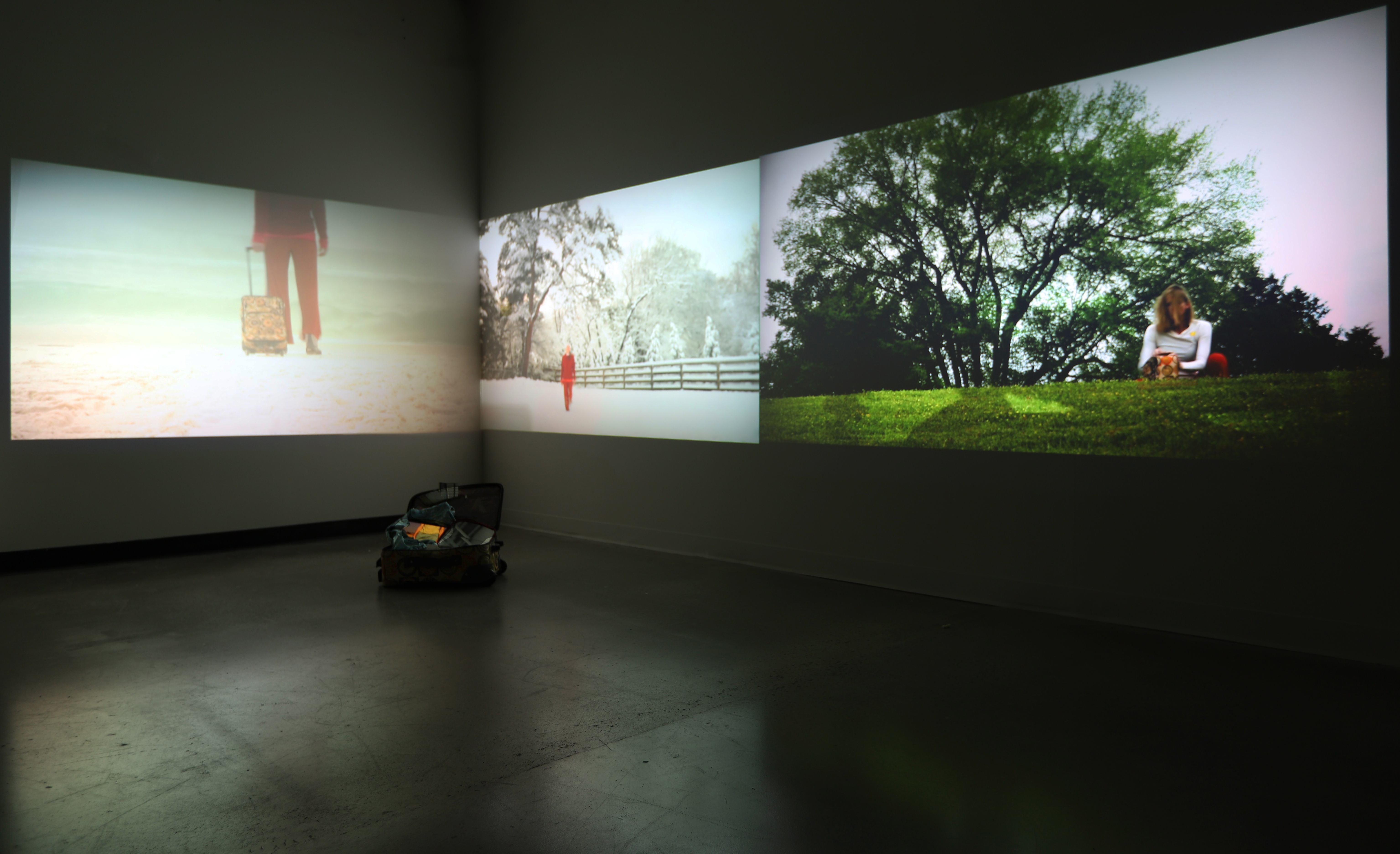 the audience is invited into the process of meaning making as an active participant. They are given structural clues to perceive narrative while each repeating loop invites a re-frame of their experience. Extended viewing of the installation allows the visitor to collect clues and unearth details of an experience uniquely built by their own attention and commitment of time. The audience becomes the real-time editor of their own experience.