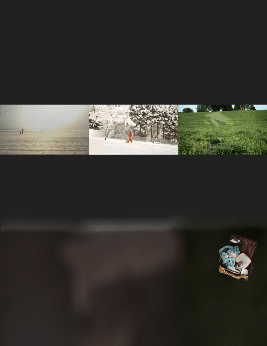 Mockup No.2 projects as a (single channel) triptych onto one wall. The trolley bag with small monitor sits in near space to the third (grass) scene. This configuration is suitable for shared shows and smaller spaces.